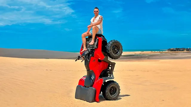 Faça um emocionante passeio de buggy ou quadriciclo pelas dunas de areia em Jeri. Os guias locais levam você em uma aventura pelas paisagens deslumbrantes, levando-o para os roteiros mais conhecidos como: lado leste, oeste e barrinha.